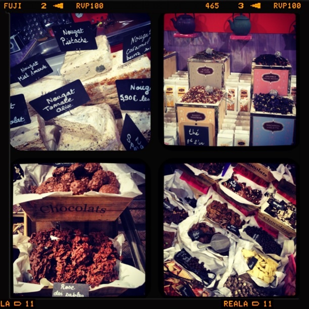 Mais aussi des nougats à la figues et dattes, cramberries, ou encore orange et canelle etc etc etc… Bref voici un palais de gourmandises. Il ne faudra surtout pas oublier de goûter les pâtes à tartiner au spéculoos, à la feuilletine, ou au caramel et beurre salé par exemple. Et pour finir des petits chocolats qui accompagneront merveilleusement bien votre café soit à la rose violette, soit blanc à la framboise, ou aux noix de Pécan…..De quoi vous régaler avec un bon thé ou chocolat chaud….Et oui au village du « charvet » ce sont des gros carrés de chocolat, à faire fondre dans son lait chaud, que l’on déguste en terrasse.