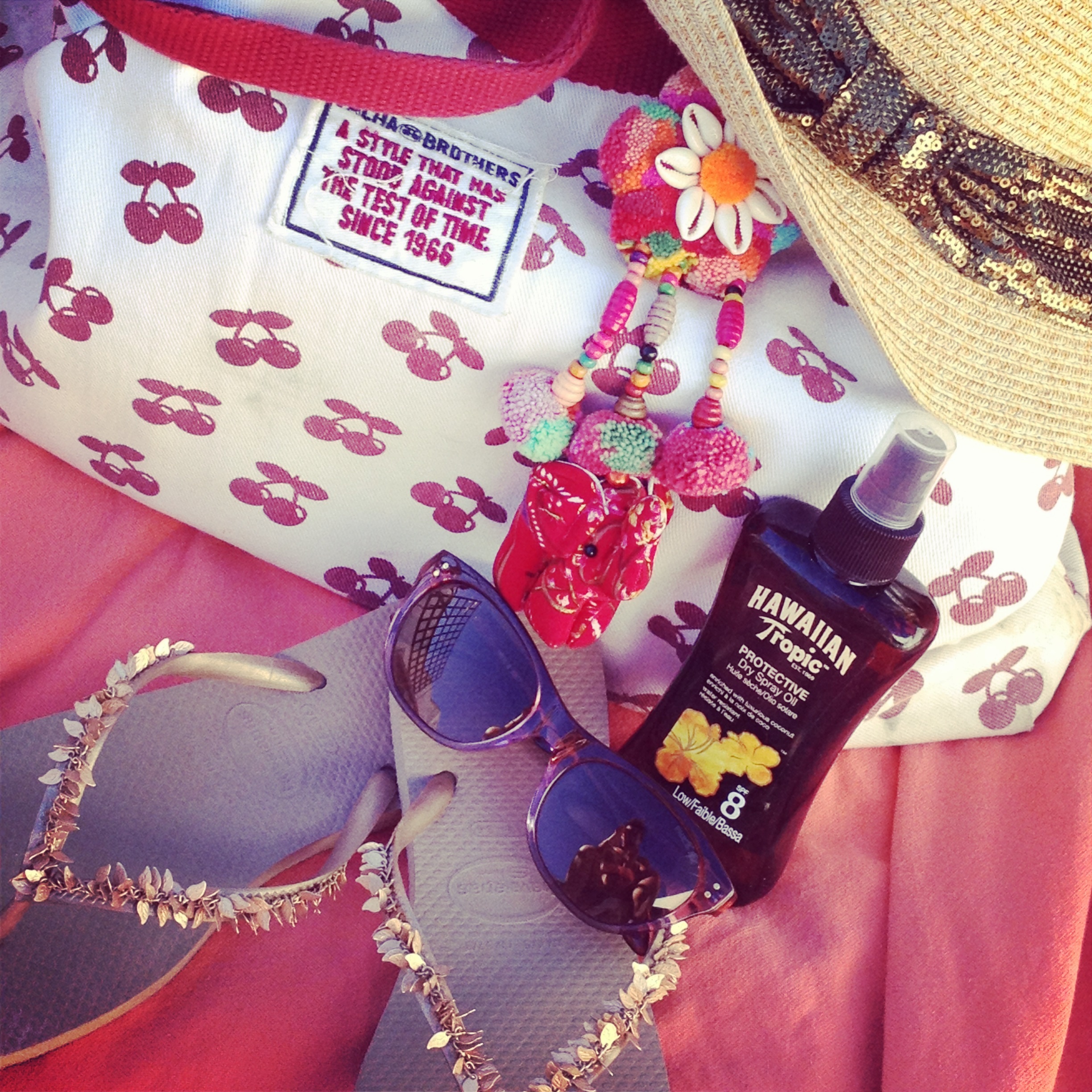 Alors depuis ces 10 dernières années oú je parcours l’île de gauche à droite, j’ai mon ptit kit plage… Mon sac Vintage (que j’adore) shoppé au « Pacha shop », chapeau & lunette de soleil, ma fouta chinée sur la plage de » Sa Trinxa », mon huile solaire Hawaiian Tropic qui sent trop bon (j´peux pas changer!!?), et mes New havaianas shoppées dans la boutique havaïanas d’Eivissa (tous les ans une nouvelle paire!!?), me voilà prête pour aller à la plage…..Cette année ma fantaisie préférée mon porte clé style Katmandou Trop Beau!!!! Chopper dans une des centaines de petites tiendas de plage…. Et oui le kiffe à Ibiza c’est que le shopping c’est sans fin!!!?